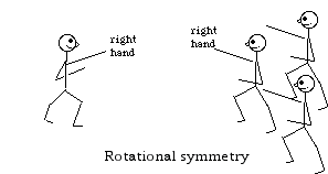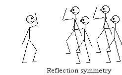 This is the kind of symmetry used in the game Simon Says, or observed when you see yourself in a video monitor in a store: you move your right arm and your TV image moves its right arm.