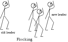 Divide the class into several flocks of at least three people each. Allow two or more groups to work on the flocking (translation symmetry) exercise at the same time. Let the groups move around the room and pass through each other on occasion.